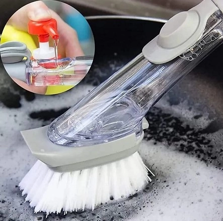 A Escova Porta Detergente trás mais economia e ajuda na limpeza pesada do dia a dia. É multiuso e pode ser usada na cozinha, lavanderia, banheiro, etc. Retire sujeiras difíceis de panelas, pratos, e talheres facilmente sem contato com o sabão. Também pode ser utilizado para limpar locais de acesso de difícil acesso em pias, cantos, e rejuntes de azulejo. Escolha entre a escova e a esponja para realizar a limpeza de louças e utensílios.