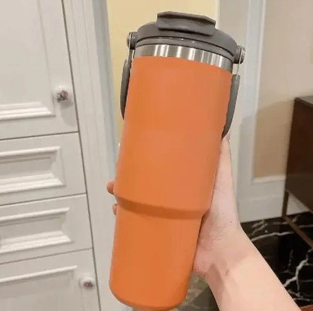 Copo Térmico Inox 900ml Com Tampa e Canudo - Laranja - Weeze