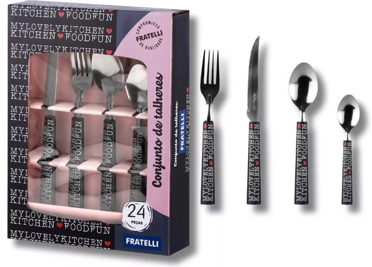 Elegância com Sofisticação! Conjunto de Talheres Decorados 24 Peças em Preto Fratelli
