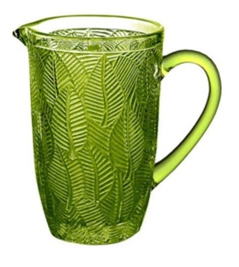 Jarra Leaves da Bon Gourmet. Feita em vidro, na cor verde e com um design moderno e encantador, é a melhor opção para servir vários tipos de bebidas com muito estilo, como sucos e água.