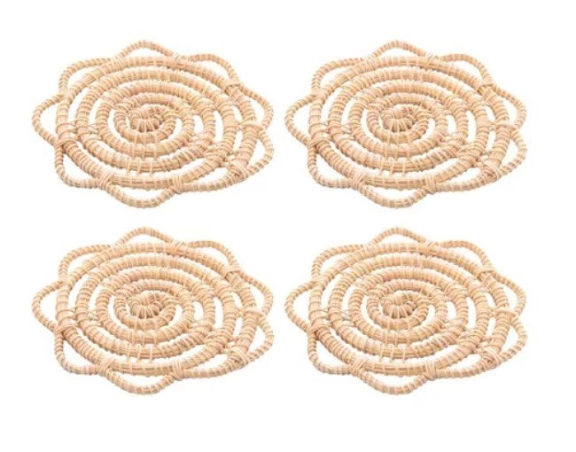 4 Porta Copos Lyor Palm De Fibra Natural Flor 10cm