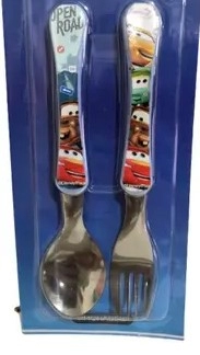 Conjunto de talheres infantil 2 peças garfo e colher disney Carros Conjunto de talheres infantil 2 peças garfo e colher disney Este conjunto de talheres infantil de duas peças inclui um garfo e uma colher, projetados para serem fáceis de segurar pelas mãos pequenas das crianças. Cada talher apresenta personagens populares da disney que certamente encantarão os pequenos fãs, tornando as refeições ainda mais divertidas.