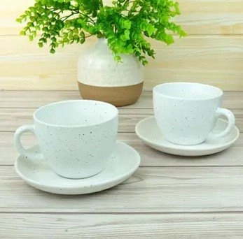 JOGO DE XÍCARAS CERAMICA BRANCA COM PIRES O jogo de xícaras de cerâmica com pires de 210ml é um conjunto elegante e funcional, perfeito para desfrutar de suas bebidas quentes favoritas, como café, chá ou chocolate quente. As xícaras são feitas de cerâmica de alta qualidade, conhecida por sua durabilidade e capacidade de reter o calor por mais tempo. Elas têm uma capacidade de 210ml, o que é ideal para uma dose generosa de sua bebida favorita. Possui um design clássico e elegante.